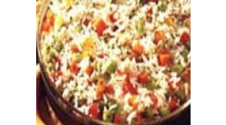 Misture o arroz, acerte o sal, decore com o ramo de salsa e sirva a seguir.